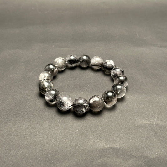 【049】<C>7Aブラックルチルクォーツブレス 内径約16cm ルース約10mm *会長シール付き【live限定】live20251031