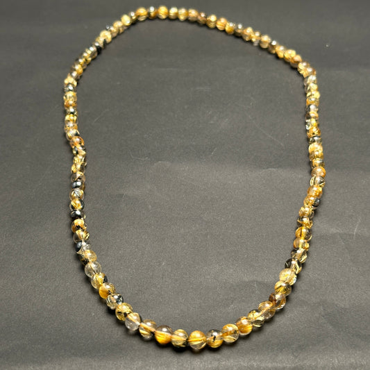 【044】<B>太陽放射ルチルネックレス(3連ブレス) ルース約6mm 約50cm *会長シール付き【live限定】live20251031
